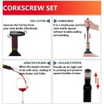 Αυτό το σετ 4-σε-1 περιλαμβάνει ανοιχτήρι με αντλία αέρα, κόφτη αλουμινόχαρτου, ραχέα αεριστή και πώμα κενού για άψογη εμπειρία κρασιού.
