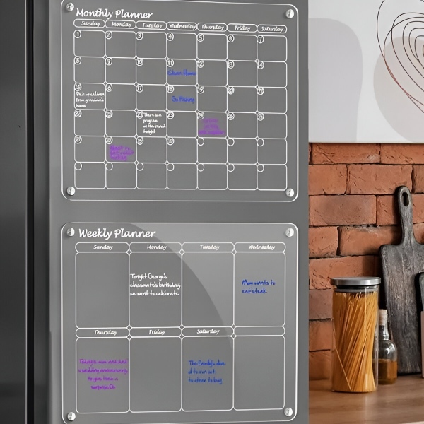 Ακρυλικό Σετ Ημερολογίου Ψυγείου – Μηνιαίο + Εβδομαδιαίο Πλάνο (το καθένα 40 x 30 cm), 4 Μαγνήτες, Μαρκαδόροι, Σφουγγαράκι | REUSABLEPLAN
