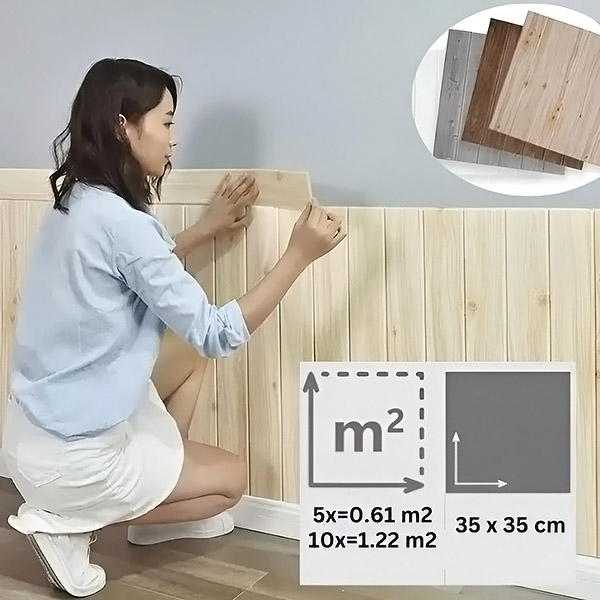 Κάθε συσκευασία περιέχει 5 τεμάχια (35×35 cm), που καλύπτουν 0,61 m². Πριν ξεκινήσετε, υπολογίστε πόσα πακέτα θα χρειαστείτε με βάση το εμβαδόν του τοίχου σας. Αγοράστε περισσότερα πακέτα για μεγαλύτερους χώρους και επωφεληθείτε από τις εκπτώσεις αγοράς περισσότερων τεμαχίων!