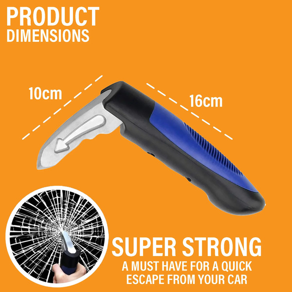 Λειτουργίες: Εργαλείο για σπάσιμο παραθύρων, κόφτης ζώνης ασφαλείας, φακός LED (επαναφορτιζόμενος), σφυρίχτρα και λαβή υποβοήθησης.