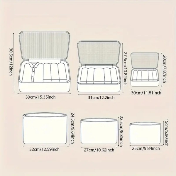 Ξεχάστε τις υπερφορτωμένες αποσκευές και τον χαμένο χώρο! Με το σετ των 6 τσαντών, η συσκευασία για το επόμενο ταξίδι σας γίνεται εύκολη και χωρίς άγχος. Μπορείτε να συσκευάσετε ρούχα, παπούτσια, είδη προσωπικής υγιεινής και άλλα. Κρατήστε τα ρούχα σας τακτοποιημένα και χωρίς ζάρες εν κινήσει!