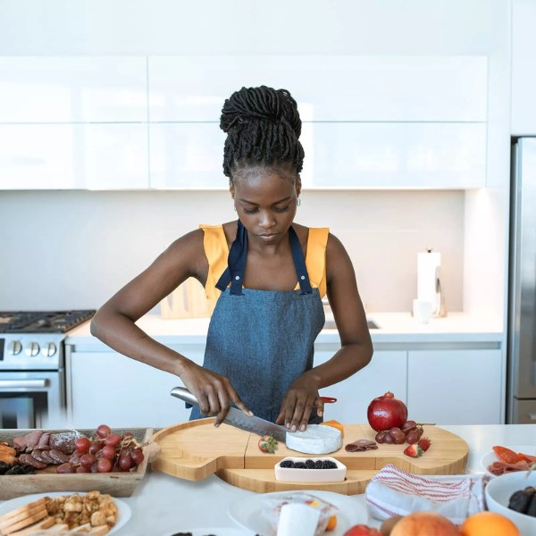 Αυτό το πιάτο όχι μόνο παρουσιάζει κομψά τα σνακ σας, αλλά λειτουργεί και ως επιφάνεια κοπής. Η λεία ξύλινη επιφάνειά του καθιστά εύκολη την κοπή και το σερβίρισμα όλων των αγαπημένων σας σνακ σε ένα μέρος.