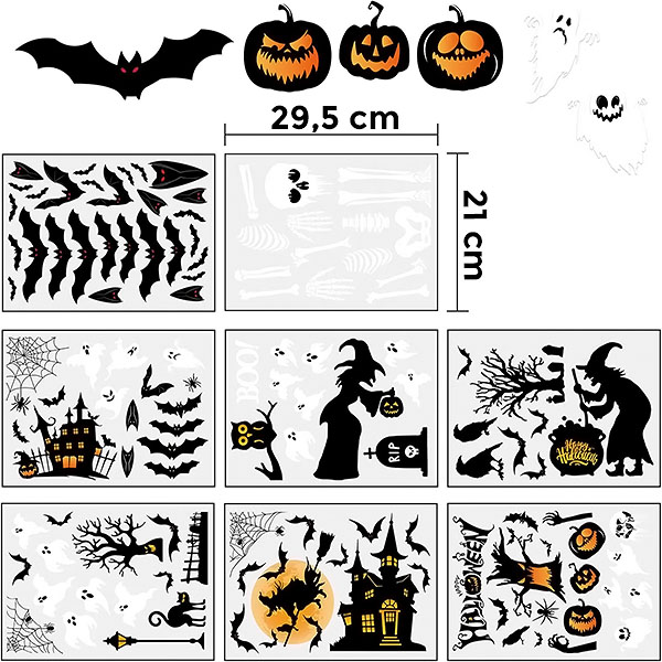 Απόκριες αυτοκόλλητα παραθύρων (10 φύλλα με αυτοκόλλητα σε σετ) | SPOOKCLINGS