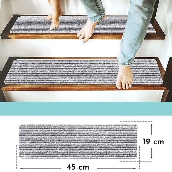 Απολαύστε την ηρεμία χωρίς να θυσιάζετε το στυλ – αυτά τα πατάκια ταιριάζουν άψογα με την είσοδό σας και μπορούν να κοπούν για να ταιριάζουν σε οποιοδήποτε μέγεθος σκάλας, προσθέτοντας τόσο ασφάλεια όσο και κομψότητα στο σπίτι σας.